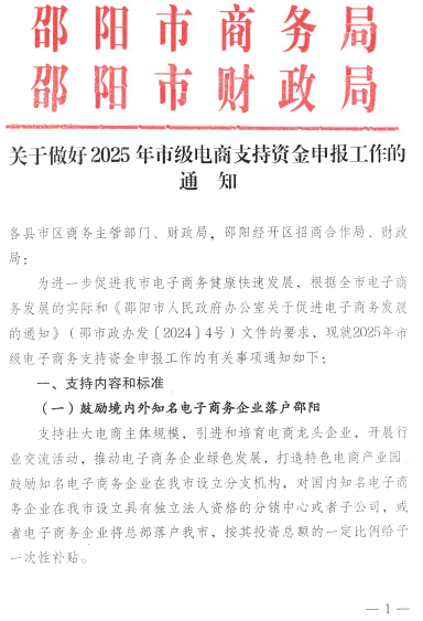 隆回县商务局转发关于做好2025年市级电商支持资金申报工作的通知